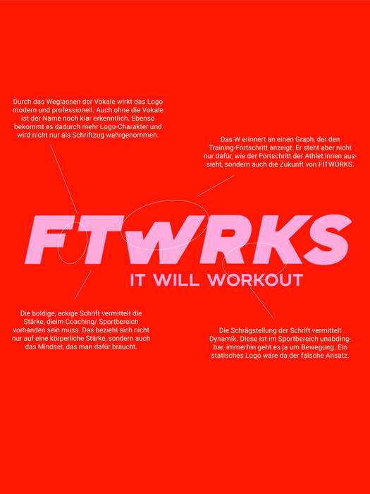 Teresa hat das Branding für FITWORKS entwickelt – und ich bin bis heute unglaublich happy damit. Ich habe absolute Klarheit in Farben, Fonts und Gestaltung und kann jederzeit professionell und konsistent auftreten. Das Design ist modern, besonders und hebt sich im überfüllten Fitnessmarkt klar ab.